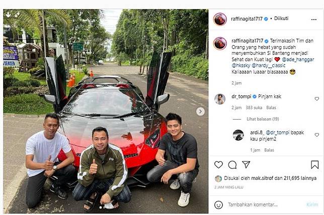 "Terimakasih Tim dan Orang yang hebat yang sudah menyembuhkan Si Banteng menjadi Sehat dan Kuat lagi @ade_hanggar @hkssky @hardy__classicKaliaaaan luaaar biasaaaaa," tulis @raffinagita1717.