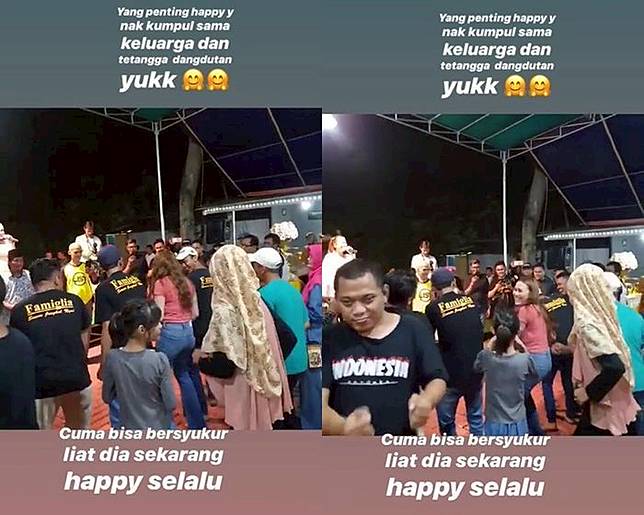 "Yang penting happy y nak kumpul sama keluarga dan tetangga dangdutan yukk. Cuma bisa bersyukur liat dia sekarang happy selalu", tulis sang ibu.