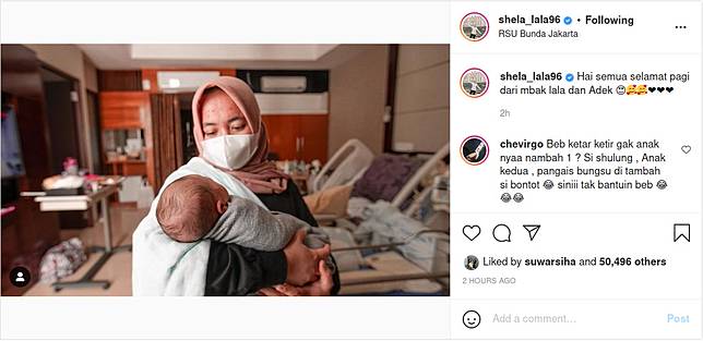 Shela tampak mengunggah foto bersama anak kedua Raffi Ahmad dan Nagita Slavina.Diketahui Nagita memang baru saja melahirkan anak keduanya.