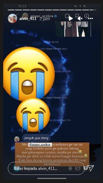 "Mer @ameer_azzikra seandainya gue tahu ini yang terakhir pasti gue paksain dateng Mer gimana pun caranya," tulis Alvin Faiz.