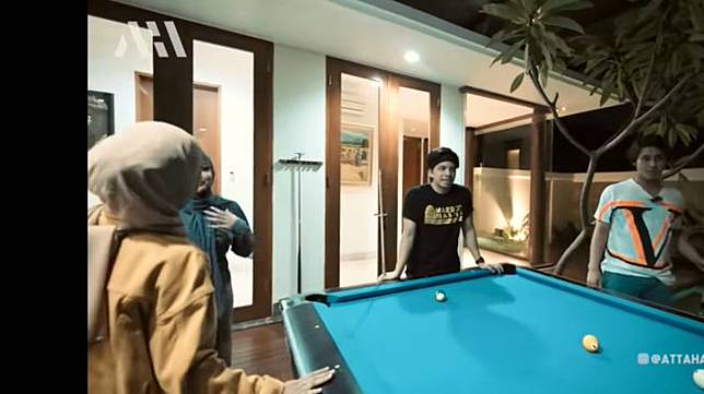 Rizky Billar juga menyediakan tempat untuknya bersenang-senang di rumah. Satu meja billiard hadir di sisi kolam renang. Atta Halilintar makin terpukau sebab sejak lama orang-orang di rumahnya meminta hal tersebut.