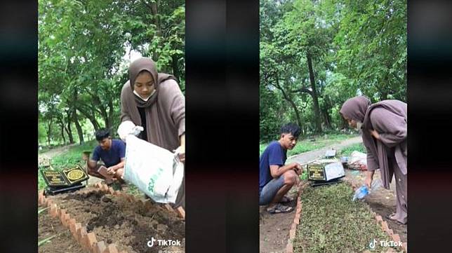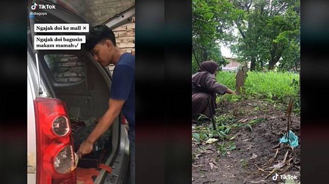 Lewat unggahannya, tampak seorang pria mengajak pacar melakukan ziarah ke makam ibu. Tidak hanya itu, pria ini rupanya berniat merapikan makam ibu.