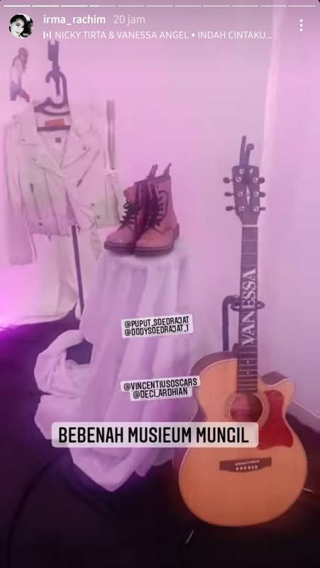 Mulai dari gitar bertuliskan nama Vanessa, sepatu, jaket, hingga topi yang pernah dikenakan saat manggung.