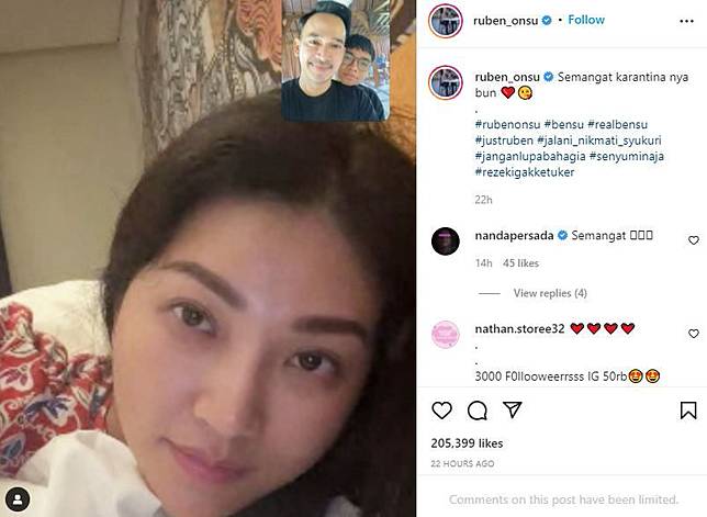"Semangat karantinanya bun (emoji)," tulis Ruben Onsu.